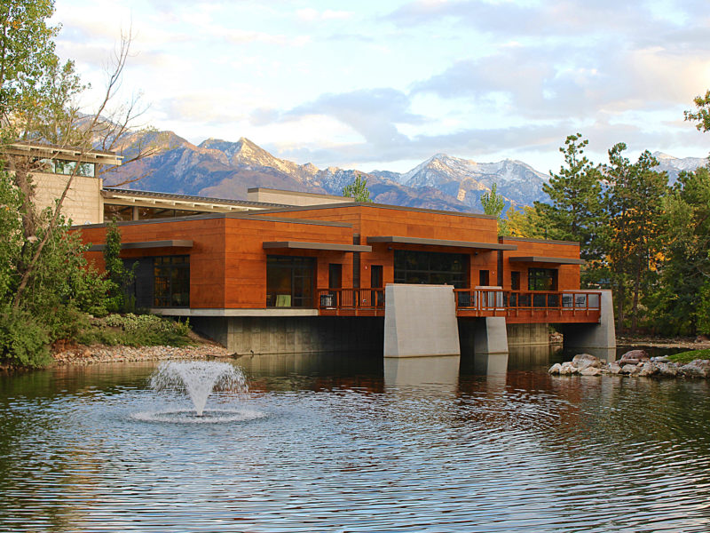Park City’s luxury resort development, Promontory Club, features a heavy-timber design activity center with an exposed butterfly-support roof design to cover the adjacent outdoor pavilion. The activity center hosts an art gallery, basketball court, bowling alley, fitness and wellness center, dining facility, and clubhouse.